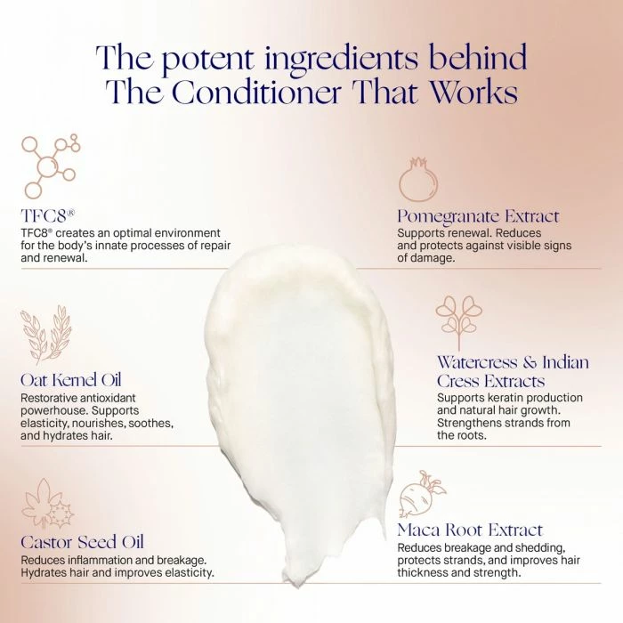 The Conditioner is designed to work synergistically with The Shampoo, revitalizing hair while detangling strands, controlling frizz, and building volume and shine. Experience haircare redefined. Backed by over 30 years of cutting-edge science. Powered by TFC8ยฎ.