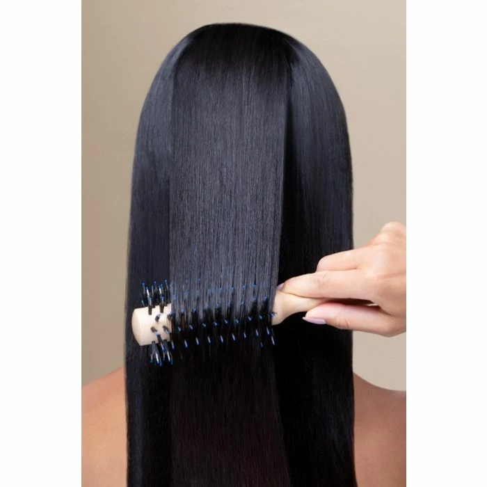 Ideal for giving a wavy blow-dry to medium to long hair, this large-sized diameter round brush easily straightens thick and curly hair. It can also be used to give shape to straight hair. The wild boar hair allows for gentle drying, while the supple bristles provide a better hold on the hair for easy drying. Hair is better able to be straightened and looks shinier and softer. Frizz is better controlled.