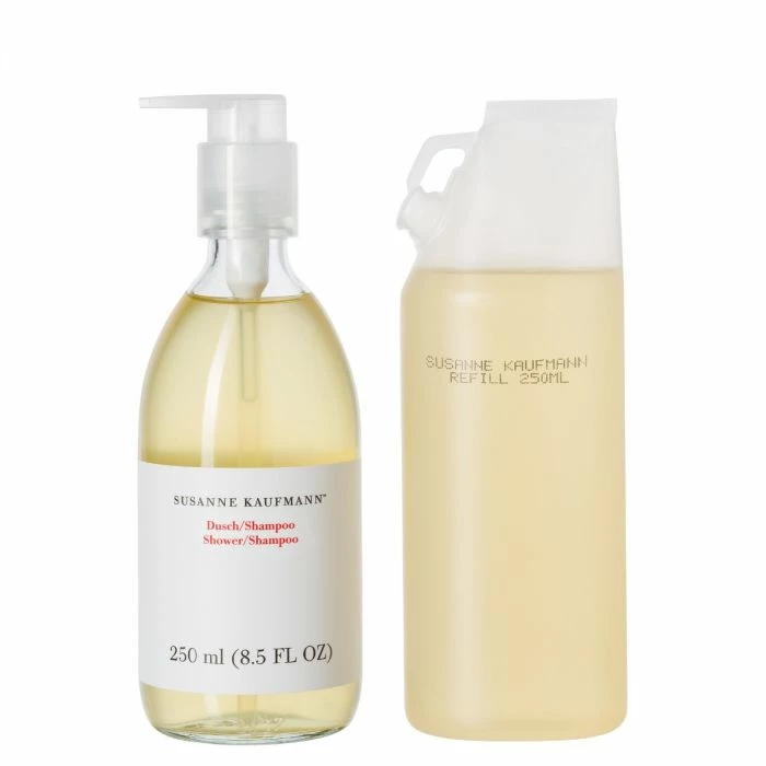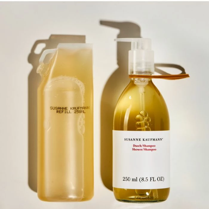 The Susanne Kaufmann Shower/Shampoo is shampoo, conditioner, shower gel, and skincare in one. Soluble silk elements form a very thin film that protects the skin and hair against dehydration. Sugar surfactants made from renewable raw materials are fully biodegradable and non-irritating. With its pleasantly subtle scent, the Shower/Shampoo is the ideal skincare product for the entire family.