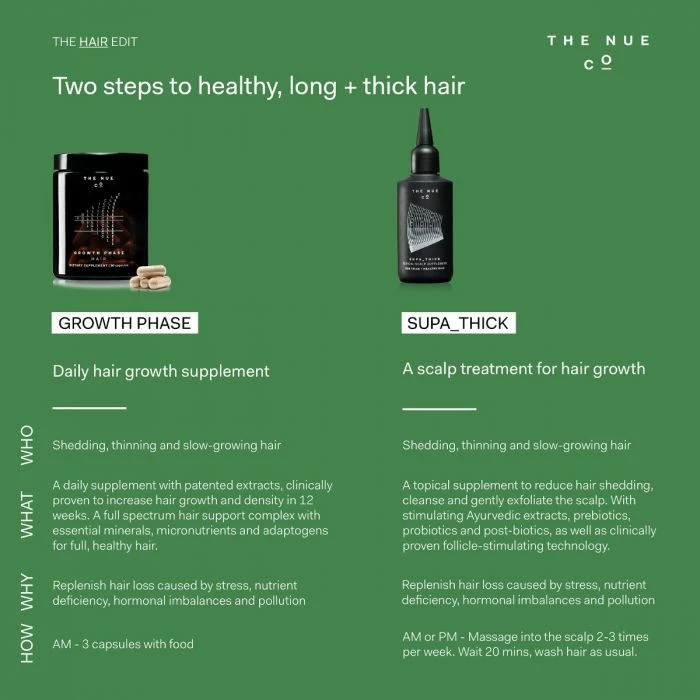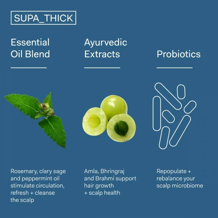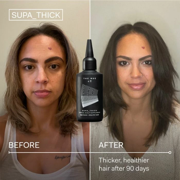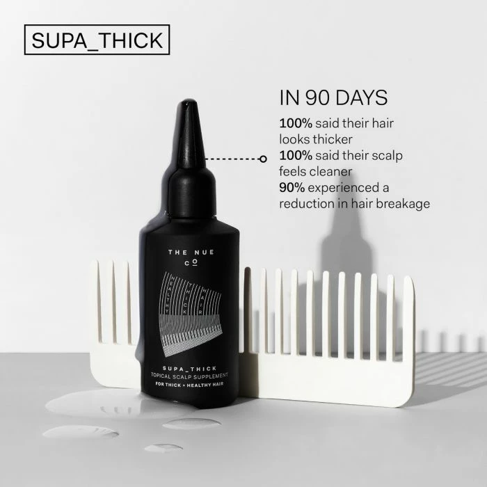 For hair that is thinning or regularly sheds, SUPA_THICK is a topical scalp supplement designed to reduce hair shedding, building thicker hair with more body.
